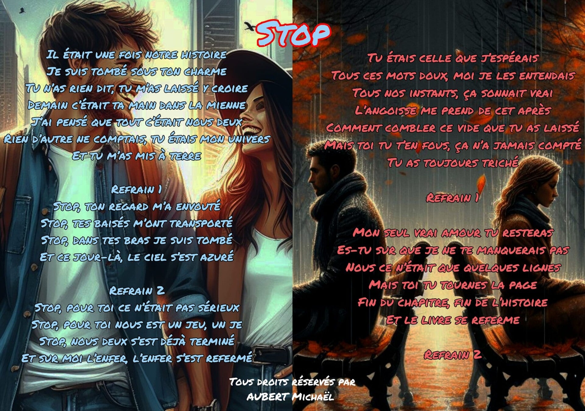Il veut une histoire de rupture moderne avec le mot Stop qui revient souvent, un peu comme un gimmick.