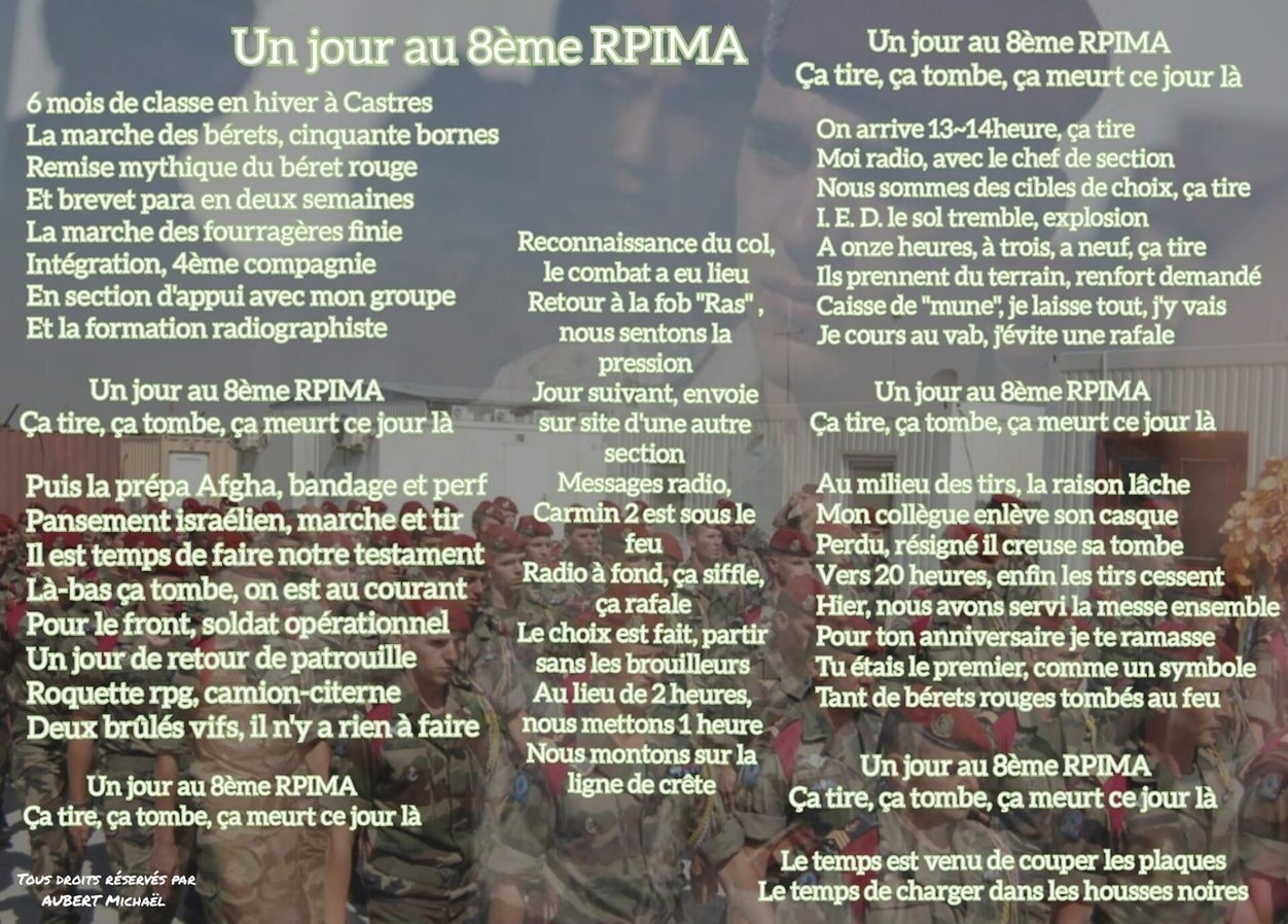 J'ai voulu ce texte comme un récit, et surtout comme un hommage pour louer le courage de nos soldats.